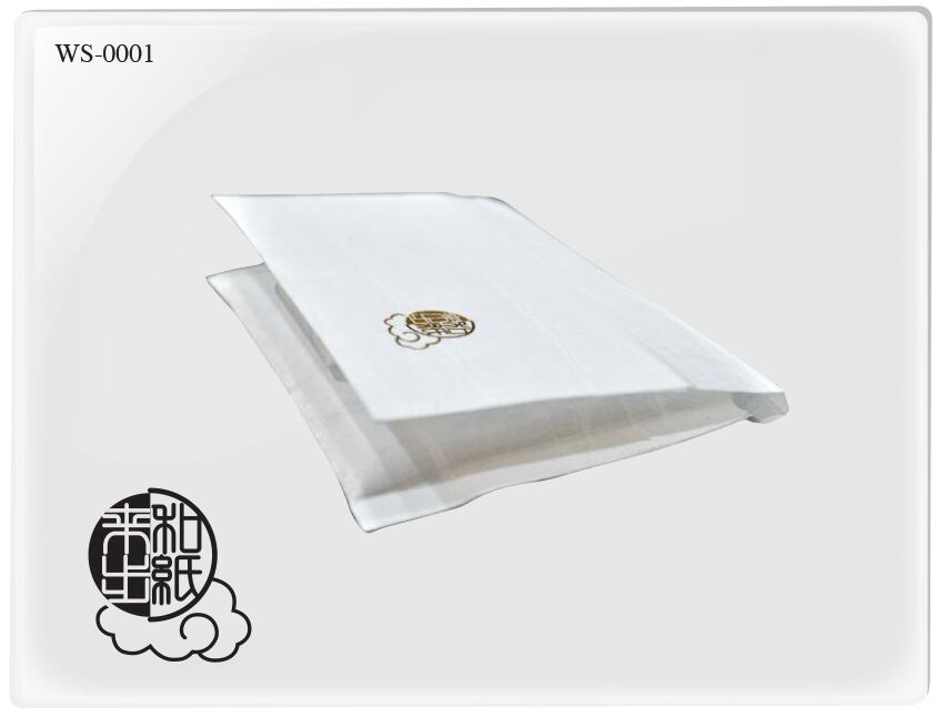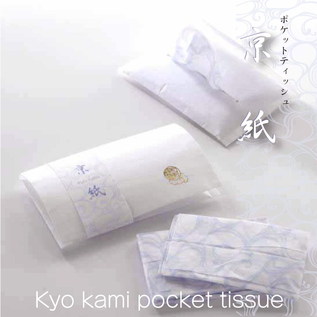 糸入り和紙のポケットティッシュケース付きです。 真っ白な和紙に金色ロゴがアクセントになっています。