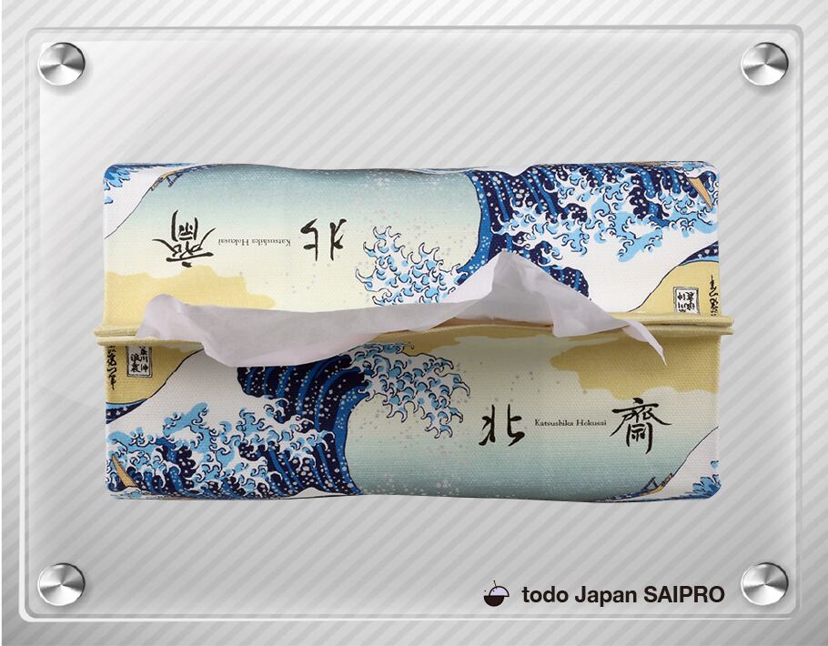 MANYO 綿布ティッシュボックスカバー TBox-015:No.6 葛飾北斎 『神奈川沖浪裏』